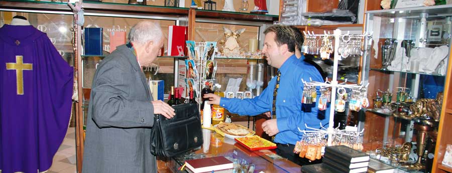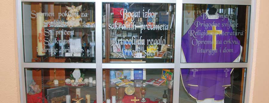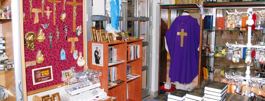 Nalazimo se u Poreču u blizini crkve Gospe od Anđela. U našoj bogatoj ponudi nudimo kršćansku literaturu, misna ruha, liturgijsko posuđe, kipove, božićne figure i ukrase, svijeće, tamjan, devocionalije, misna vina te bogati izbor darova za sve prigode.