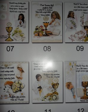 U ponudi imamo razne vjerske slike, sličice svetaca (sa ili bez molitve), katoličke kalendare jednolisne, dvolisne, dvanaestlistne ili pak džepne, te Danicu, razne molitve, devetnice, vjersku publikaciju, uspomene na Sv. sakramente (sv. krštenje, pričest ili krizmu).