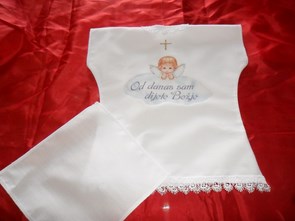 Prigodom Sv. Krštenja vašeg djeteta nudimo Vam mogućnost kupnje krsne košulhice - haljinice. Uz svaki komplet dobivate na poklon i maramicu kojom se prigodom Sv. Krštenja obriše čelo vašeg djeteta, te tako u cjelosti krsni komplet ostaje trajna uspomena na sam sveti čin.